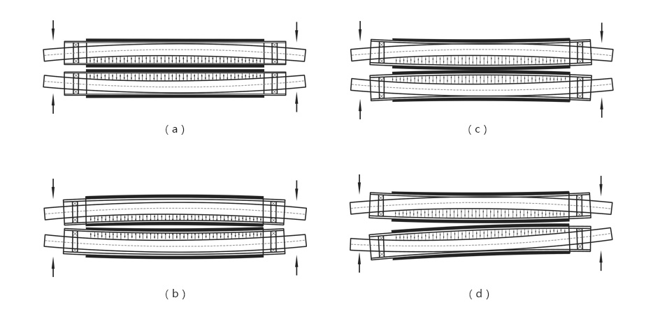 (1) when the pressure load at both ends of the roll and the internal pressure oil force are exactly offset, the roll will not produce flexural deformation. See figure (a).